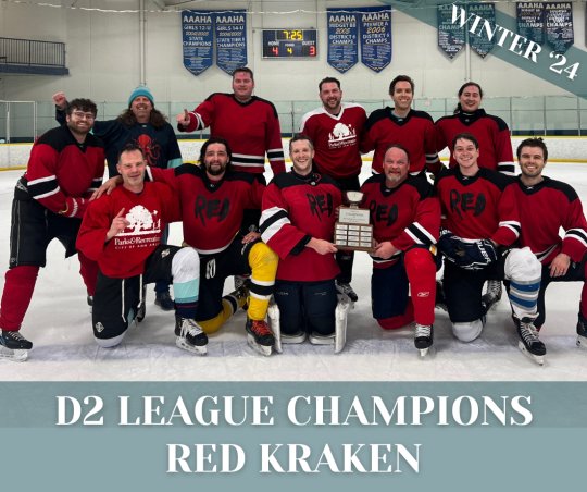 Red Kraken defeated Bombs 4-3 in overtime on Wednesday, April 17, 2024 to win the D2 Lower Championship best-of-3 series